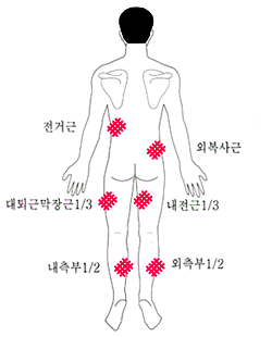 ÀÔÀ§ ÀÚ¼¼¿¡¼´Â ¼öÁ÷¼±»ó¿¡¼ Trigger Point¸¦ ã°í ±× ±âÁØÁ¡Àº ¾ÕÂÊÀº ¼ÇýºÎ, µÚÂÊÀº ´ëÀüÀÚ¸¦ ±âÁØÇÑ´Ù.